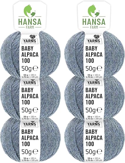 Amazon De Hansa Farm 100 Baby Alpakawolle In 50 Farben Kratzfrei 300g Set 6 X 50g Weiche Alpaka Wolle Zum Stricken Hakeln In 6 Garnstarken By Hansa Farm Grau Grun Heather